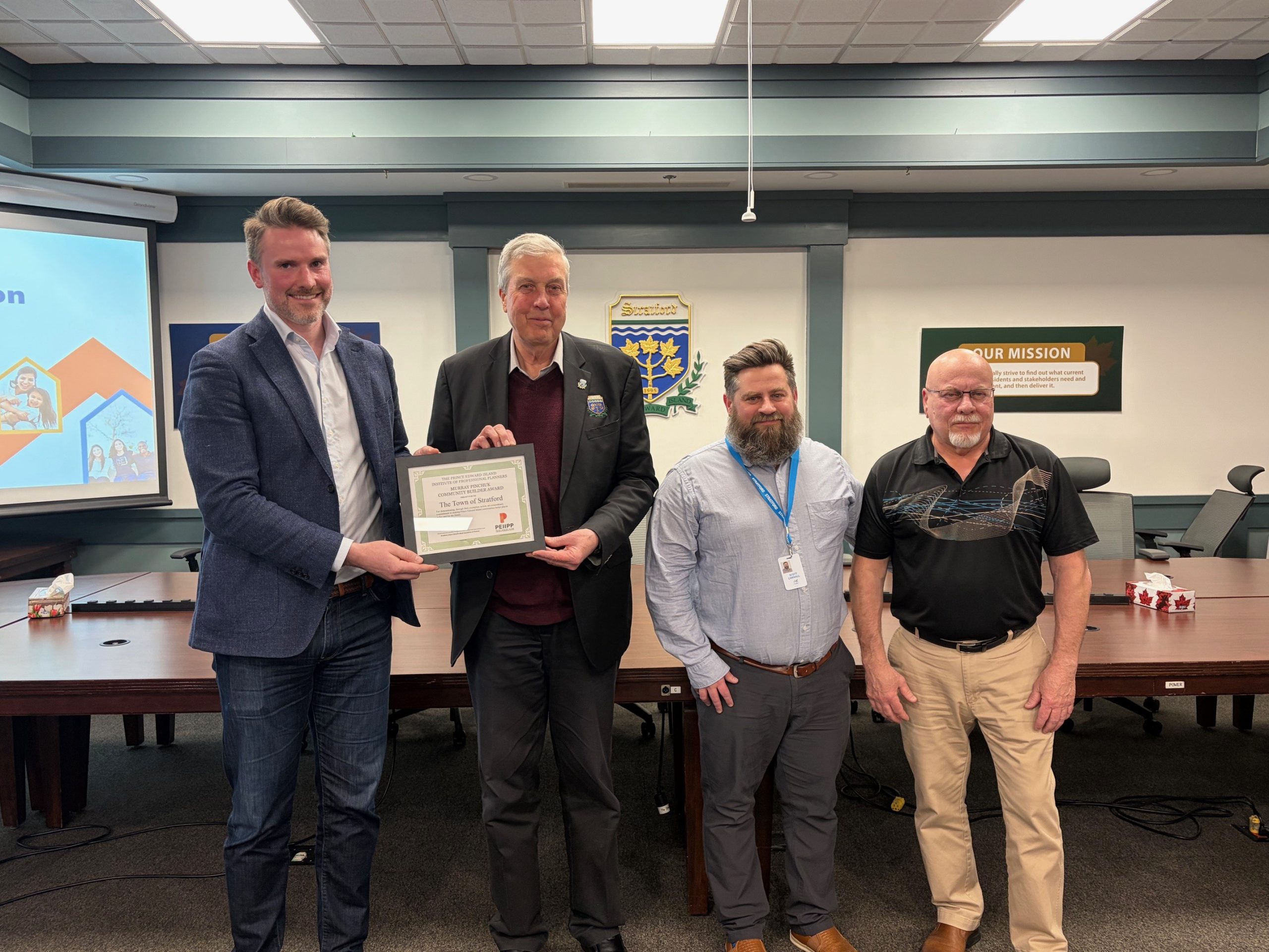 At a special presentation held on April 15, 2026, the Town of Stratford received the 2025 Murray Pinchuk Community Builder Award from the Prince Edward Island Institute of Professional Planners. The award, presented annually, honours the contributions of the late Murray Pinchuk to professional planning practice on Prince Edward Island. Mr. Pinchuk worked with the City of Summerside for many years and actively contributed to and promoted planning on Prince Edward Island. The award is presented to an individual, group or organization that has demonstrated an extraordinary commitment to making their Prince Edward Island community a better place today and for the future, in a way that touches on either the built or natural environment.