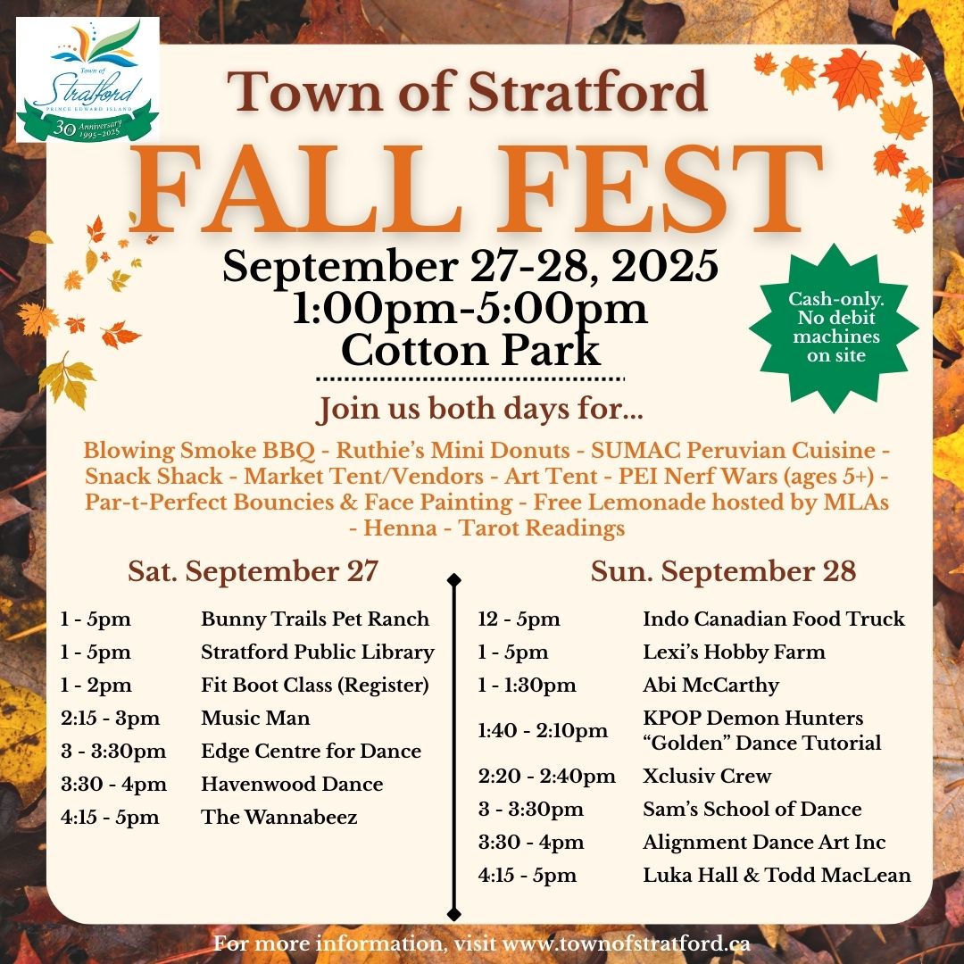 Sunday Line Up:12:00pm - 5:00pm: Indo Canadian Foot Truck1:00pm - 5:00pm: Lexi's Hobby Farm1:00pm - 1:30pm: Abi McCarthy1:40pm - 2:10pm: KPop Demon Hunters "Golden" Dance Tutorial 2:20pm - 2:40pm: Xclusiv Crew3:00pm - 3:30pm: Sam's School of Dance3:30pm - 4:00pm: Alignment Dance Art Inc.4:15pm - 5:00pm: Luka Hall & Todd MacLean