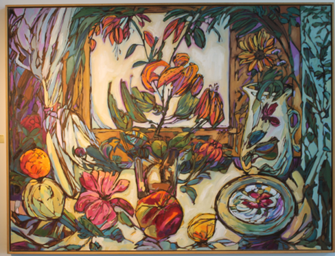 LA PETITE FENETRE, LE GRAND JOLI (1997)Artist/Designer: John CoxLocation: Stratford Town Centre (front foyer)Description: This piece was created using oil on linen. A commanding, colourful piece celebrating the beauty and colour of nature.