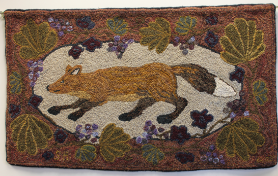 Description: Hand dyed wool hooked rug.