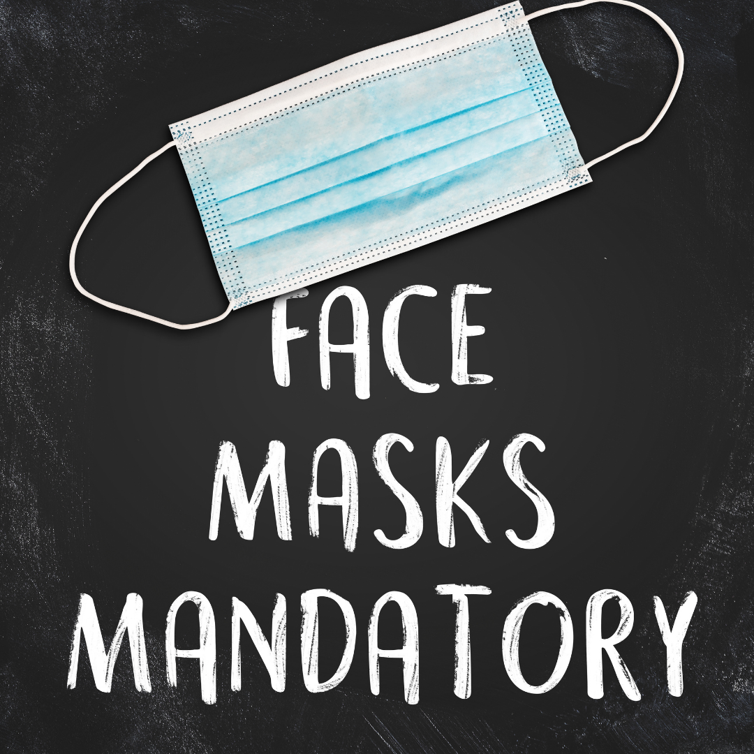 Guests entering or remaining in these premises shall wear a mask or face covering which covers the nose, mouth and chin. Not everyone’s situation is the same and exemptions may not be visible. Please be kind and supportive to others in the community who may be exempt from wearing a mask.